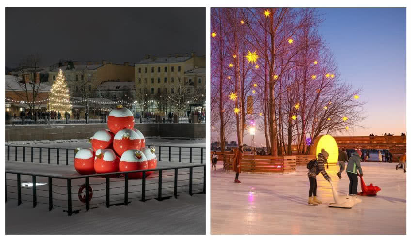 Лесной каток в «Охта Парке» – возможно, самый удивительный каток Петербурга. Его площадь – 5000 кв. м, а расположен он в 10 километрах от города в разукрашенном хвойном лесу. Для тех, кто ещё не умеет кататься, есть учебная зона; для тех, кто хочет отдохнуть – зона отдыха с креслами.