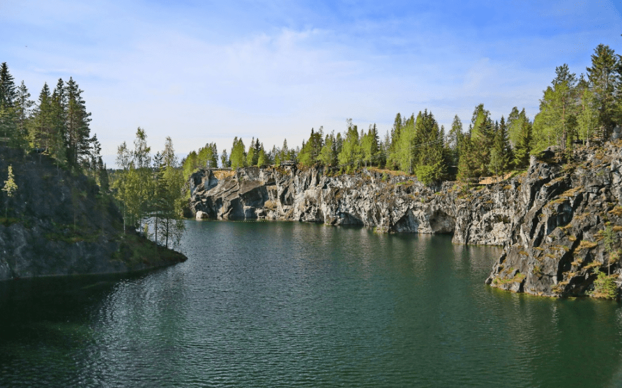 Карелия — это, в первую очередь, удивительная природа. Главная точка маршрута — горный парк Рускеала. Раньше здесь добывали мрамор для дворцов Петербурга, а сегодня место принимает туристов. Вокруг Мраморного каньона с бирюзовой водой, скалами и смотровыми площадками проложены деревянные дорожки, так что дети смогут безопасно гулять и любоваться видами.