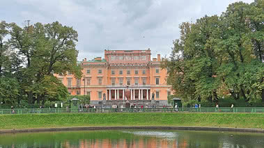 Остров с дворцом в начале XIX века приобрел сам Александр I и подарил его своей матери, Марии Федоровне. В ее честь и был отреставрирован дворец — по проекту Карла Росси, мастера ампира. К 1822 году все было готово: белоснежные колонны, симметрия, классические формы. По задумке — идеальное место для размеренного дворцового быта на природе.