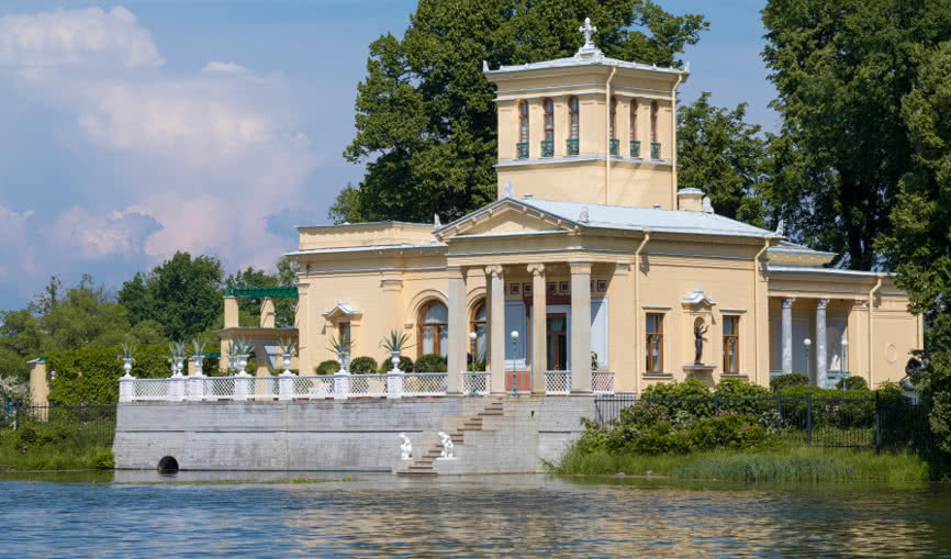 Павильоны расположены на живописных островах Ольгина пруда. Они были созданы для приятного времяпрепровождения супруги и дочери Николая I. Изысканный ансамбль в античных традициях включает: