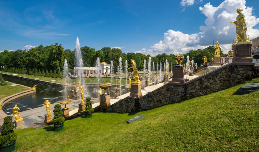 Откройте Петергоф по‑новому: фонтаны, Царицын и Ольгин павильоны.