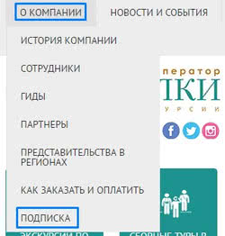 Как подписаться на рассылку с ежемесячным расписанием экскурсий и туров? Для вашего удобства 15 числа каждого месяца мы делаем рассылку с расписанием экскурсий на следующий месяц. Наши подписчики получают на свою электронную почту информацию о новинках, скидках, акциях и спецпредложениях. Мы делаем рассылку не чаще двух раз в месяц. Если вы хотите стать нашим подписчиком, то вам необходимо заполнить форму. Сделать это можно следующим образом: 1. В верхнем сером меню сайта в разделе «О компании» выберите пункт «Подписка»