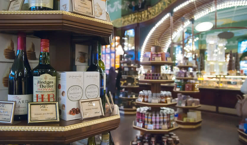 Магазин Григория Елисеева внушал богатством - как внешне, так и внутренне. Витрины были полны заморских продуктов и колониальных товаров. Здесь можно было найти сыры из Голландии и Англии, экзотические фрукты, выпечку, десерты и даже собственное производство вин. Элитный торговый дом продолжал сохранять свой статус вплоть до советских времен, когда в нем также можно было приобрести деликатесы и редкие продукты.