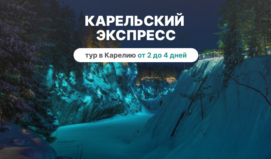 - Жемчужина Карелии — горный парк «Рускеала» — в программе тура;