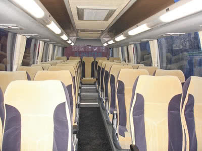 Mercedes, Neoplan, Bova, Scania, JAC, Grandbird, SsangYong, Yutong (44–49 мест). Оборудование: кондиционер, микрофон, TV\DVD. Автобусы марок Mercedes, Neoplan, Bova и Scania не старше трёх лет относятся к бизнес классу. Другие марки — туристический класс.