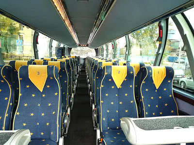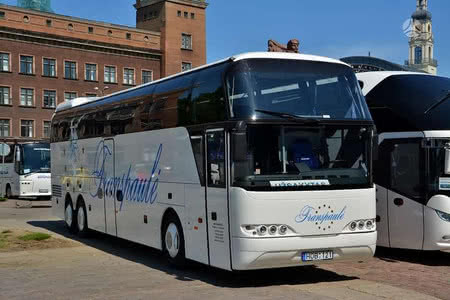 Neoplan (70–78 мест). Оборудование: кондиционер, микрофон, TV\DVD. Автобусы такой вместимости разделяются на классы по году выпуска. К бизнес классы обычно относят машины не старше трёх лет.