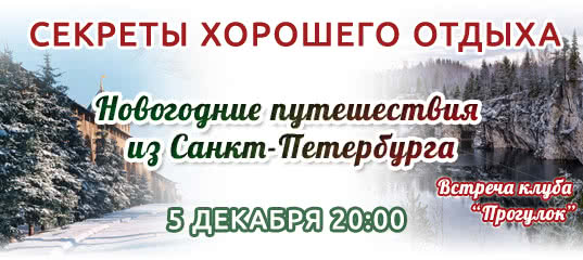 - «Секреты хорошего отдыха: новогодние путешествия из Санкт-Петербурга». Встреча клуба «Прогулок».