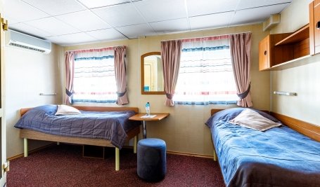 Для комфортного размещения вас ждут каюты от стандартных до полулюксов с балконом. Есть как много двухместных кают, так и одноместные, трех- и четырехместные. К навигации-2022 года на теплоходе полностью реконструирована зона кают на шлюпочной палубе – там появились новые каюты увеличенной площади с индивидуальными балконами.