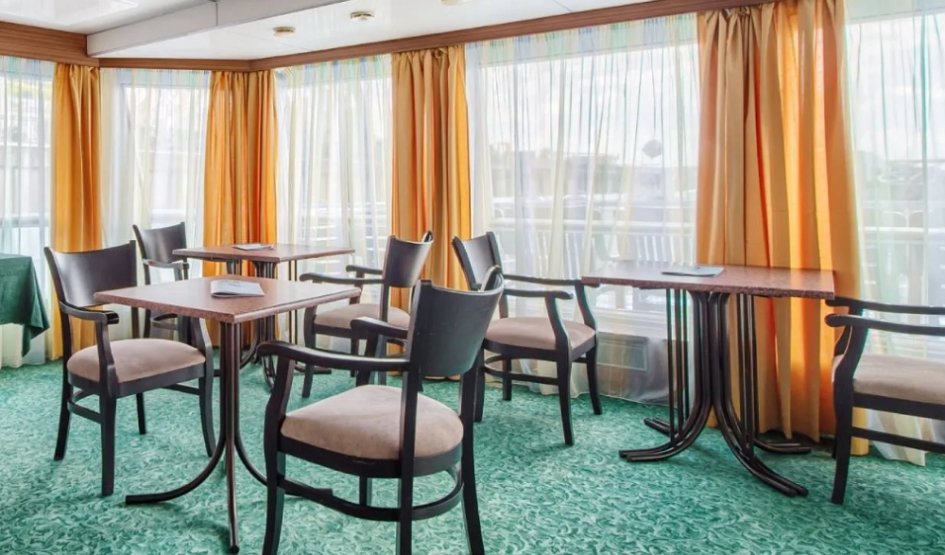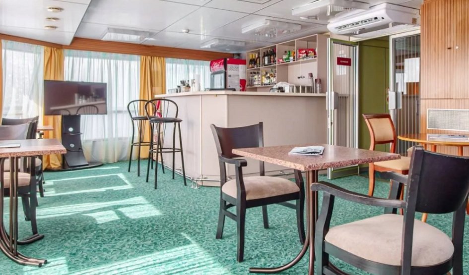 - ужин – заказная система питания (выбор блюд со 2-го дня круиза), включённые напитки (без ограничения): вода, чай, кофе, кисломолочный напиток (200 мл. на ужин по запросу гостя).