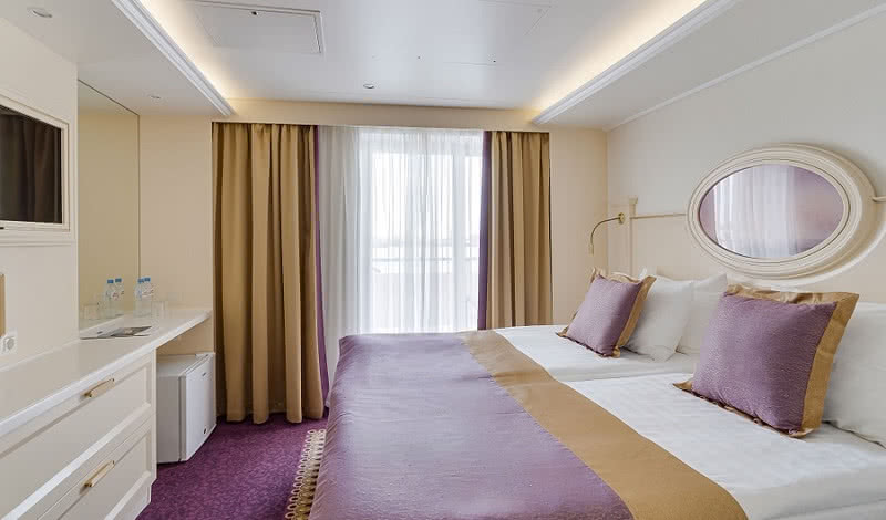 РАЗМЕЩЕНИЕДля комфортного путешествия гостям предлагается 91 двухместная каюта с современными дизайнерскими интерьерами, выполненными в светлых тонах: 2 каюты «Панорамный люкс с балконом»; 10 кают «Люкс с балконом»; 51 каюта «Полулюкс с балконом» и 28 кают «Комфорт Премиум».