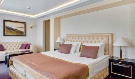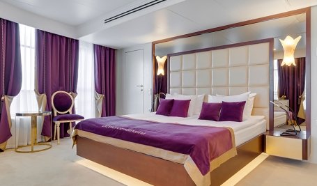 В каютах категорий «Панорамный люкс с балконом», «Люкс с балконом» и части кают «Полулюкс с балконом» возможно бесплатное размещение третьего гостя (ребенка до 14 лет включительно) на дополнительном месте (оплачивается только питание).