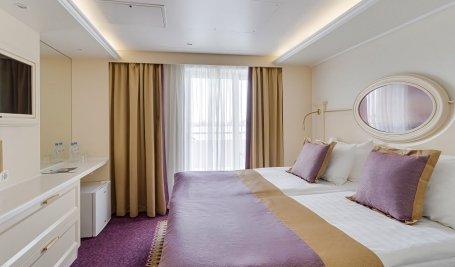 Для комфортного путешествия гостям предлагается 91 двухместная каюта с современными дизайнерскими интерьерами, выполненными в светлых тонах: 2 каюты «Панорамный люкс с балконом»; 10 кают «Люкс с балконом»; 51 каюта «Полулюкс с балконом» и 28 кают «Комфорт Премиум».