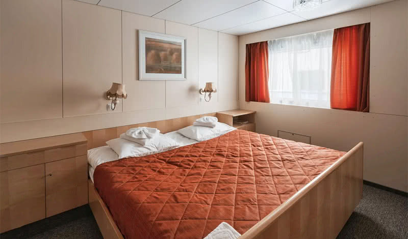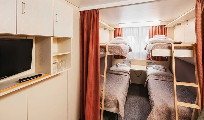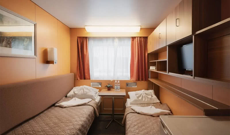 В каютах категории «Люкс» также есть холодильник, телевизор и фен.