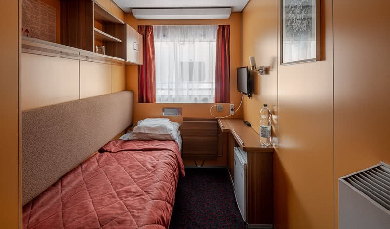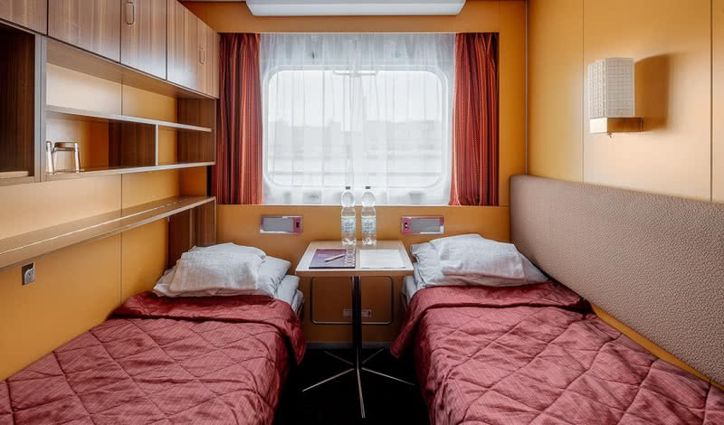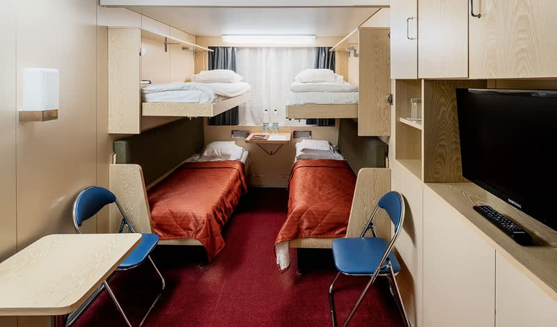 В каютах категории «Люкс» также есть холодильник, телевизор и фен.