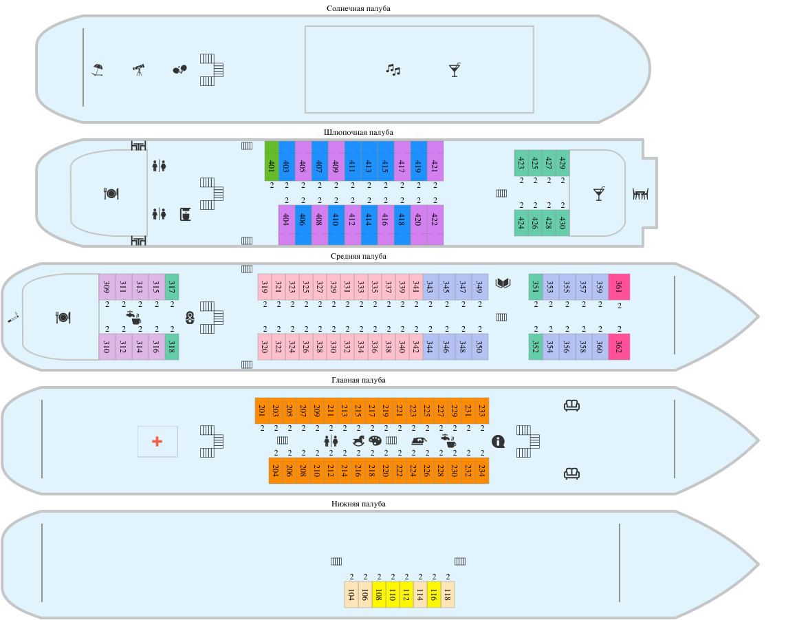 Дополнительная информацияСмотреть таблицу услуг, предоставляемых на теплоходах круизной компании «Созвездие»