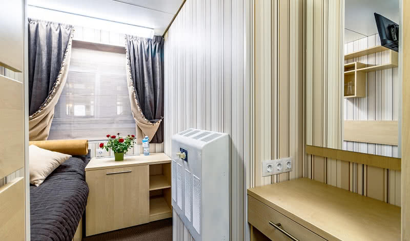 В каютах повышенной комфортности гостей ждут халаты, тапочки, маски для сна, косметика для душа, кофемашина и мини-бар и сейф.