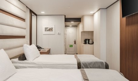 Для максимально комфортного размещения гостям предлагаются двухместные каюты различных категорий: 1 каюта «Гранд Люкс» с балконом; 2 каюты «Люкс» с балконом; 6 кают «Люкс»; 2 каюты «Полулюкс», одна из которых оборудована для маломобильных пассажиров; 8 кают «Делюкс-коннект», объединяющие 2 номера; 126 кают «Делюкс» и 4 двухместные одноярусные каюты.
