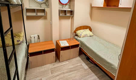 Трехместная двухъярусная каюта с частичными удобствами, расположенная на нижней палубе.