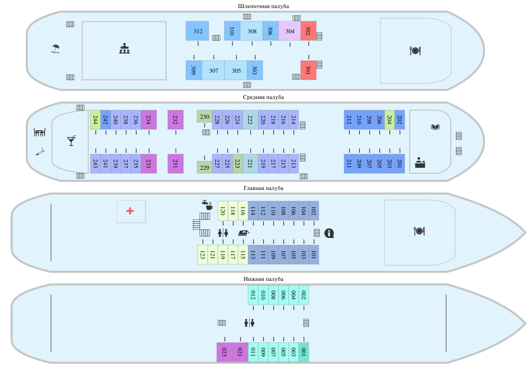 К категории Люкс относятся каюты: 301, 302.