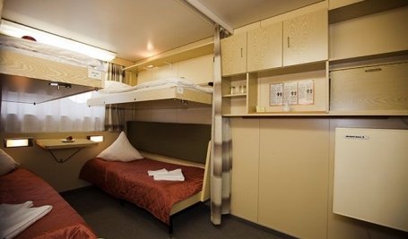 Для комфортного размещения (от 1 до 4 человек) гостям предлагаются каюты различных категорий: 10 одноместных кают, 128 двухместных одноярусных кают, 6 четырехместных двухъярусных кают.
