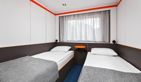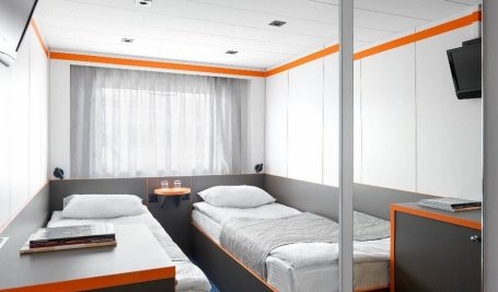 Во всех каютах: шкаф для одежды, радио, кондиционер, холодильник, телевизор, фен, душ, сейф, санузел, обзорное окно (или иллюминатор), розетка 220 V, бутилированная вода с ежедневным пополнением, гигиенический набор.