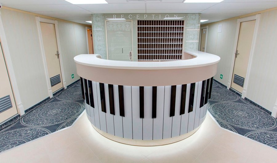 Дизайнерские интерьеры общественных помещений и 108 уютных кают выполнены в светлых тонах.