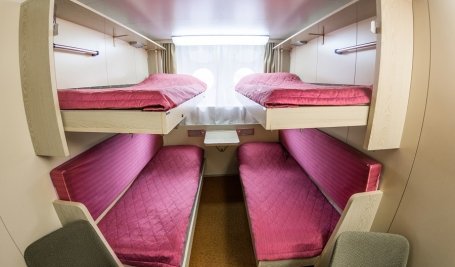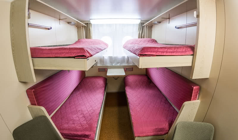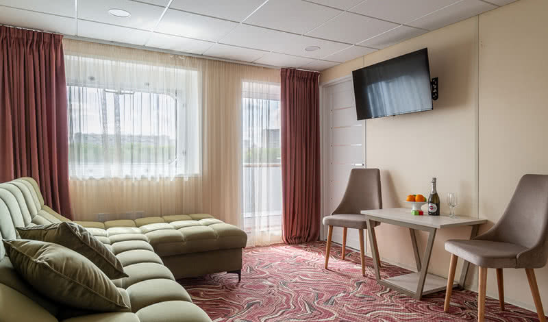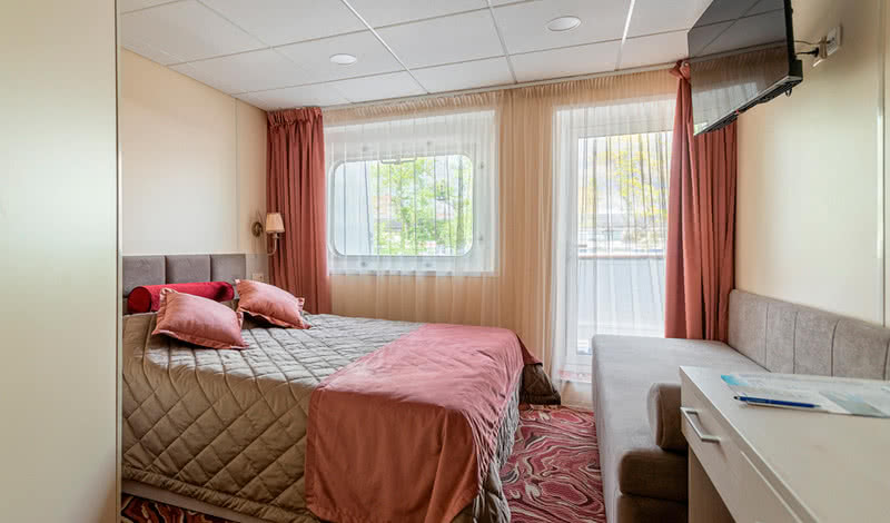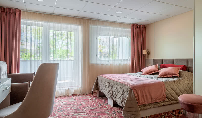В каютах повышенной комфортности гостей ждут халаты, тапочки, маски для сна, косметика для душа, кофемашина и мини-бар и сейф.