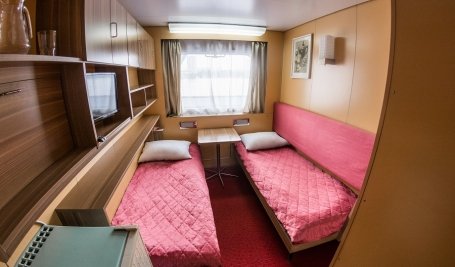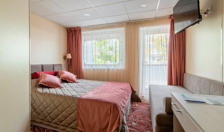 В каютах теплохода могут с комфортом разместиться до 312 гостей. Вас ждут каюты от стандартных до полулюксов с балконом и даже люкса. Есть как много двухместных кают, так и одноместные, трех- и четырехместные. К навигации-2023 на теплоходе появилось 14 кают категории А2 комфорт.