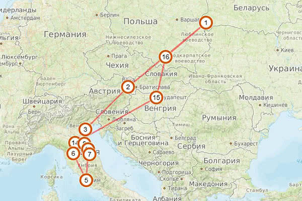 Минск / Брест – Вена – Венеция – Адриатическое побережье – Рим – Равенна – Флоренция – Сан-Марино – Болонья – Будапешт – Краков – Брест / Минск