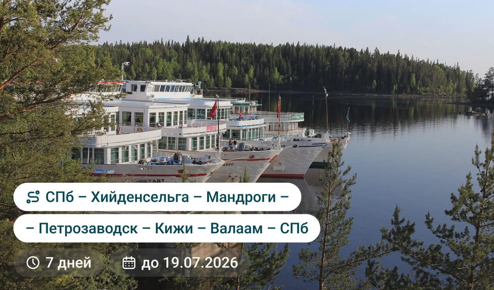 Маршрут с круизами на 7 дня по Северо-Западной России на лицензированном теплоходе. Вас встретят у трапа, помогут с багажом и организуют питание. Экскурсии вы выбираете сами — мы сделали так, чтобы ваше путешествие было максимально гибким.