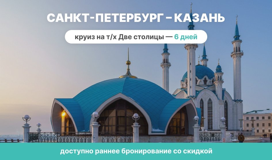 Санкт-Петербург – Мандроги – Кижи – Петрозаводск – Вытегра – Череповец – Калязин – Москва – Углич – Ярославль – Нижний Новгород – Казань (т/х Две столицы)