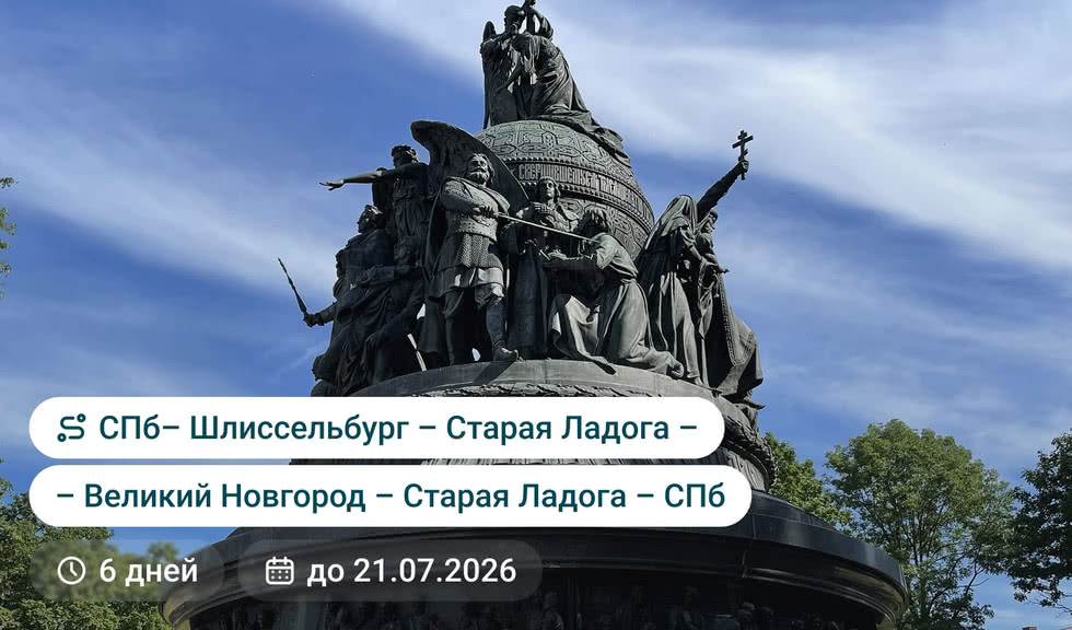 Санкт-Петербург – Шлиссельбург – Старая Ладога – Великий Новгород (2 дня) – Старая Ладога – Санкт-Петербург