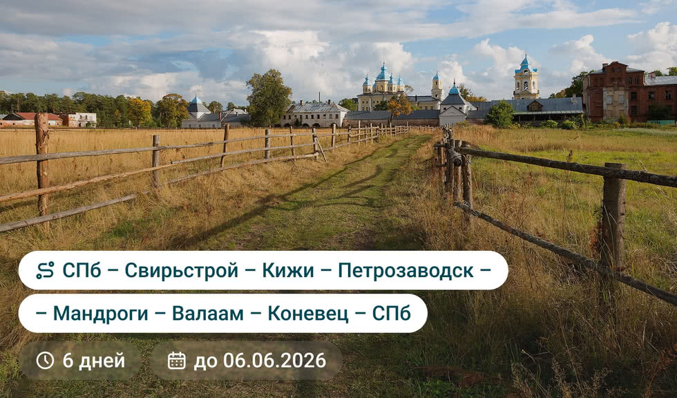 Санкт-Петербург – Свирьстрой – Кижи – Петрозаводск – Мандроги – Валаам – Коневец – Санкт-Петербург